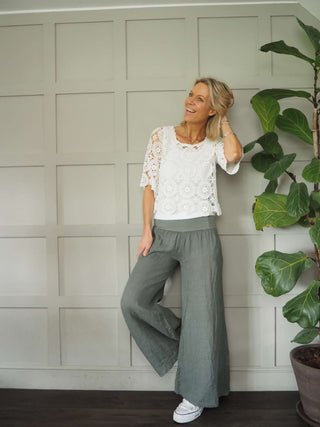 Chantel Circular Crochet Scalloped Jumper - Natural and Off-White