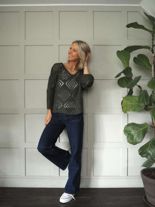 Benza V-Neck, Soft Knit Jumper - Khaki and Yellow