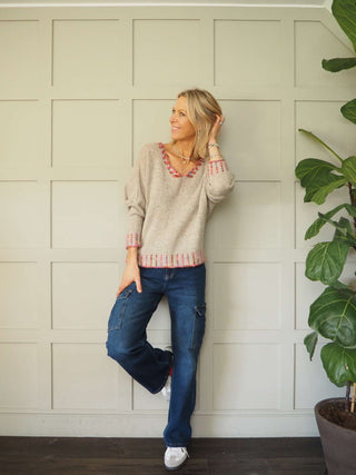 Diya Neon Trim Cashmere Mix Jumper - Bright Pink and Lime Green