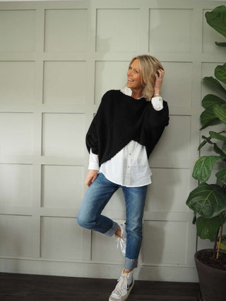 Gomez Batwing Sleeve Crossover Jumper - Black, Ecru