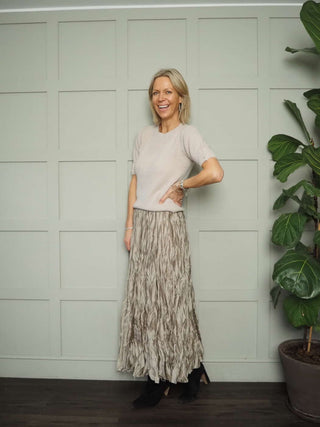 Teddi Boucle Round Neck, Cropped Sleeved Jumper - Black, Camel, Ecru and Khaki