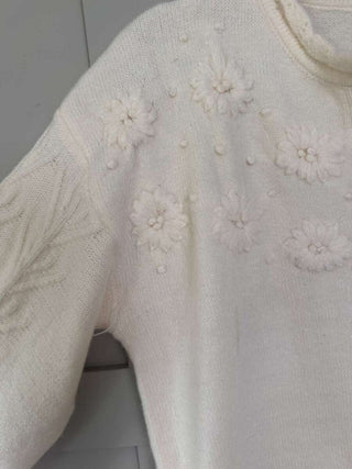 Flissy Jumper with Embroidered Flower Detail - Ecru