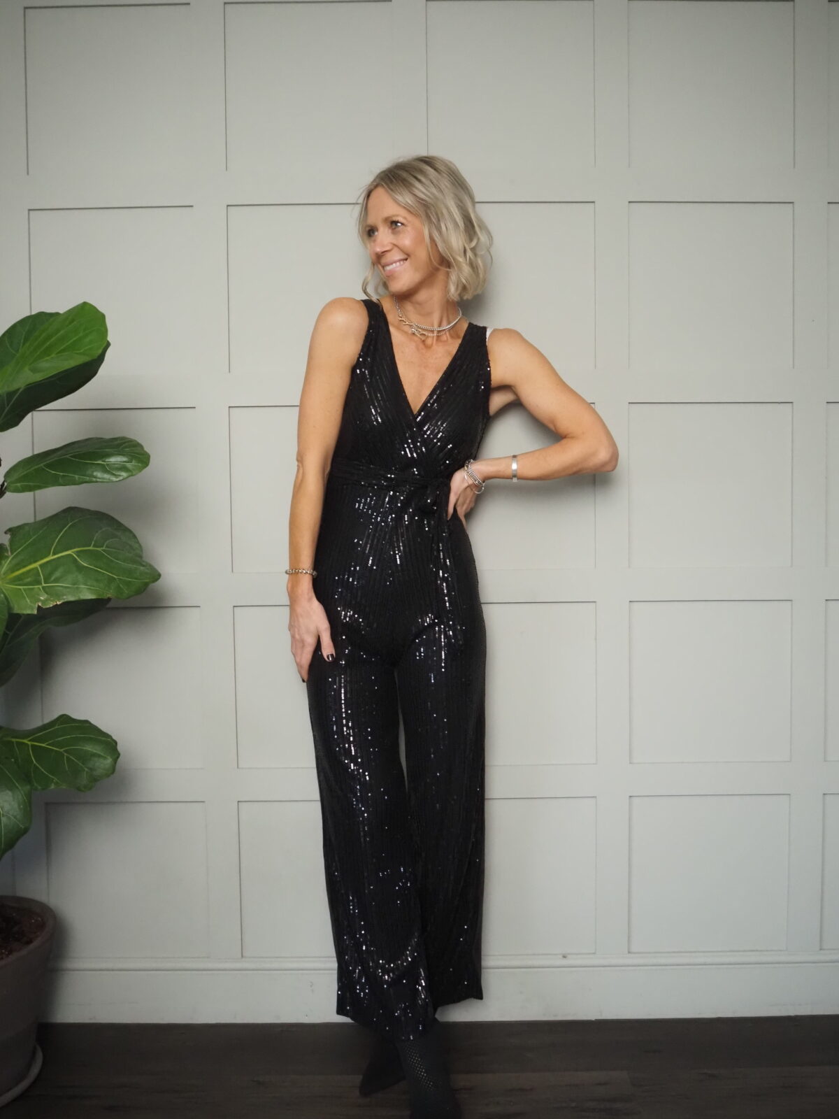 Sizing: one size to fit 8-10/12. Becky is size 8-10 and 5’9 and the jumpsuit is cropped on Becky but would work beautifully as a full length jumpsuit.