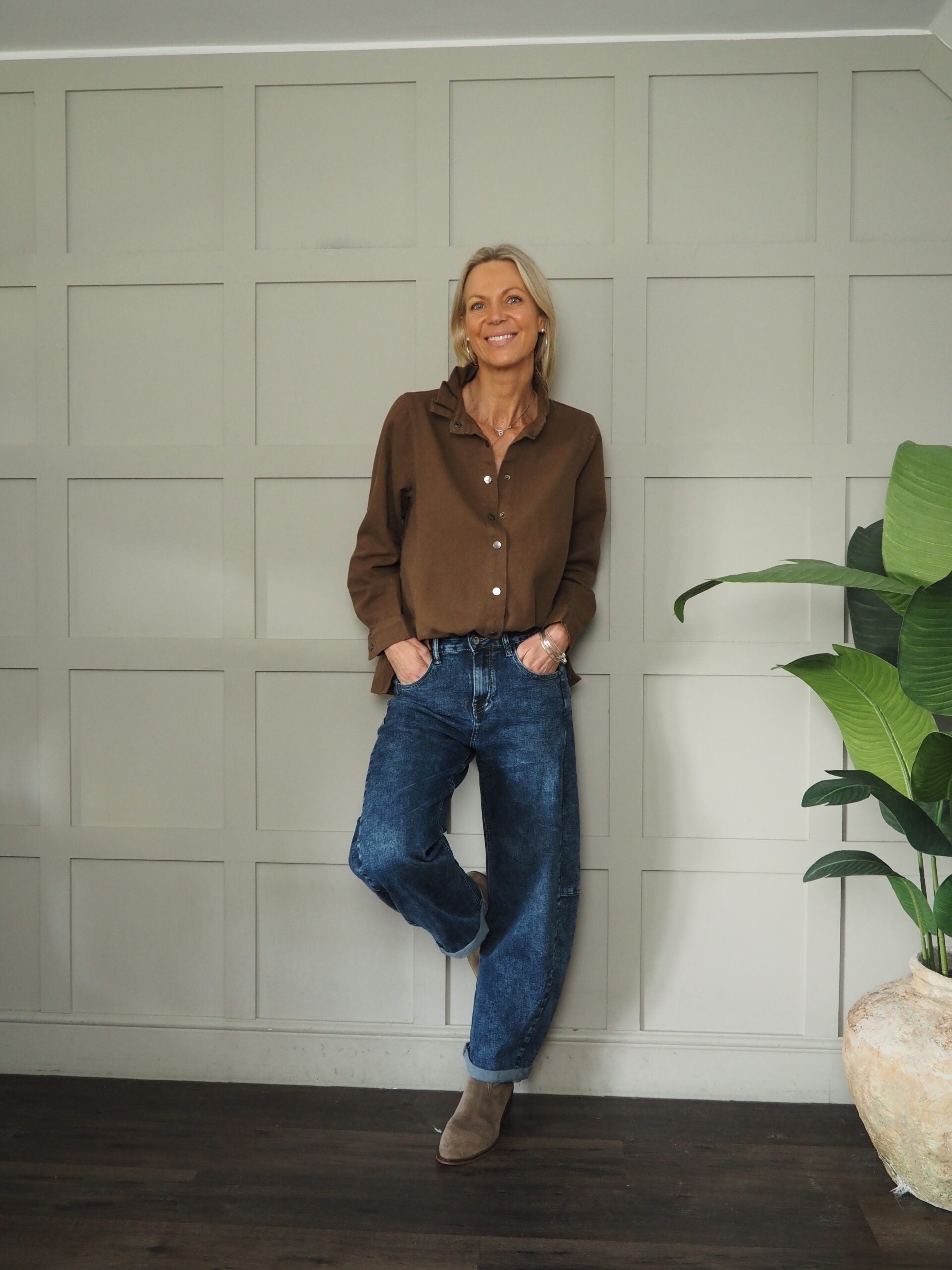 These denim shirt/shackets are a seasonless piece which can be styled in so many ways. They can be worn as a shirt with the poppers fastened, they can be worn as a jacket layered over a blouse or T shirt and they can be worn with knitwear layered over the top on cooler days. A fantastic piece which will work hard in your wardrobe. They have a fabulous pleated collar, a box pleat at the back, cropped sleeves with popper fastening and small side slits.