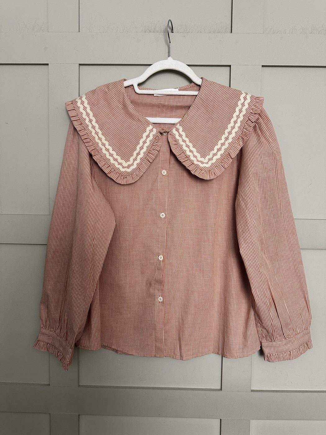 Katja Gingham Blouse with Peter Pan Collar - Rusty Red