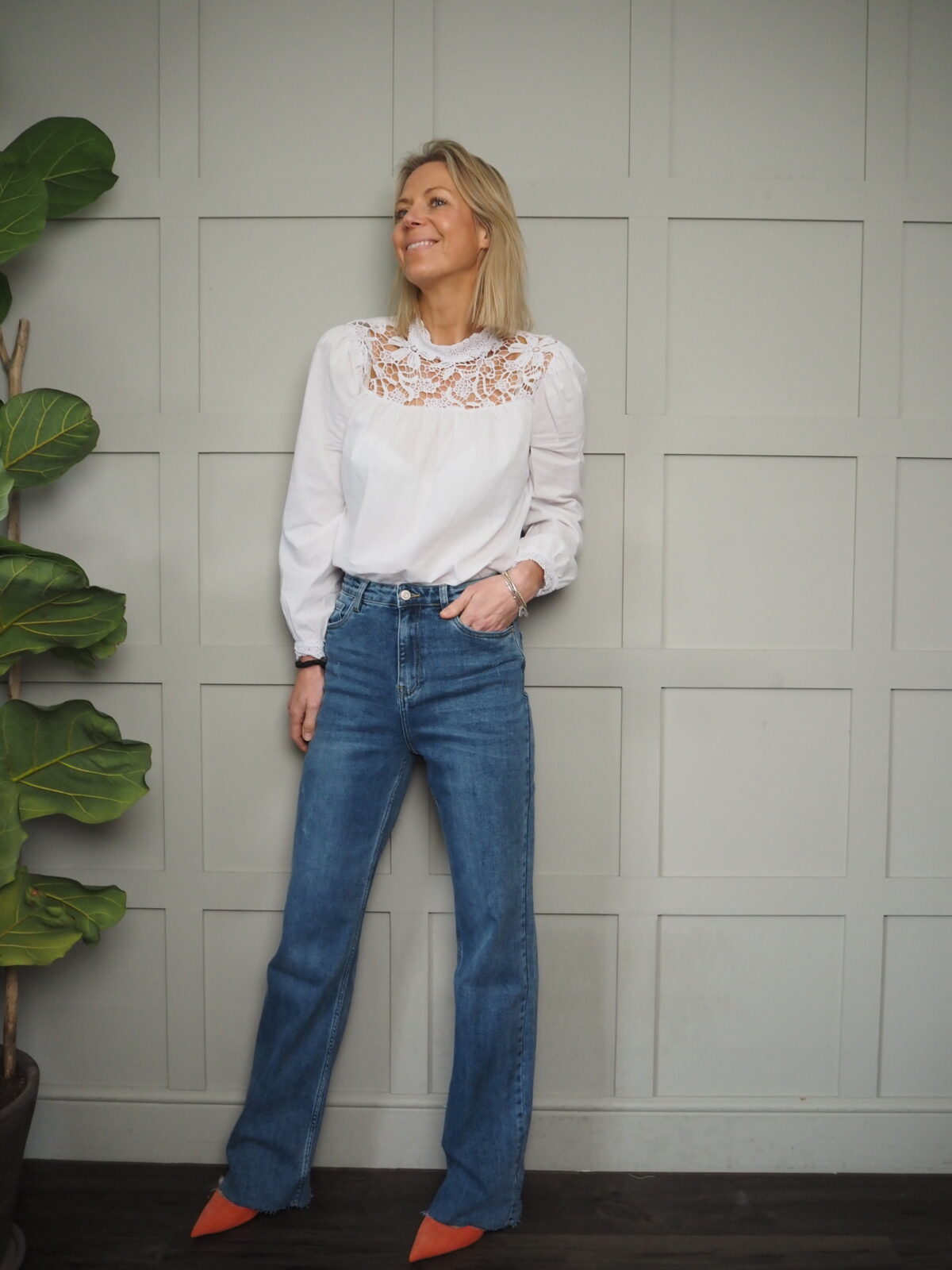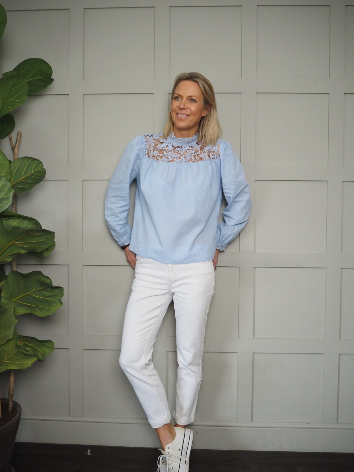 Light Blue worn with the Yaz jeans and Off White worn with the Katrina jeans.