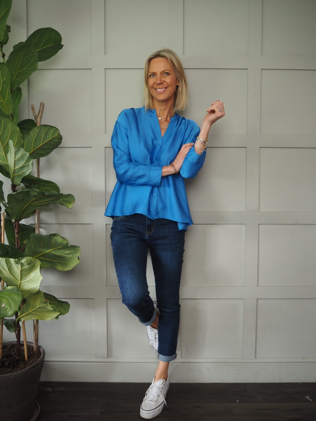 Silky soft to the touch, this is classic silk mix blouse Pretty square buttons to the front, long sleeves with a pretty little turn up on the cuffs.