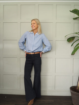Amelia Stripe Blouse with Broderie Anglaise Detail - Royal Blue/White