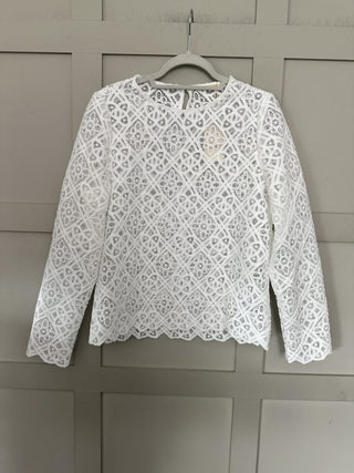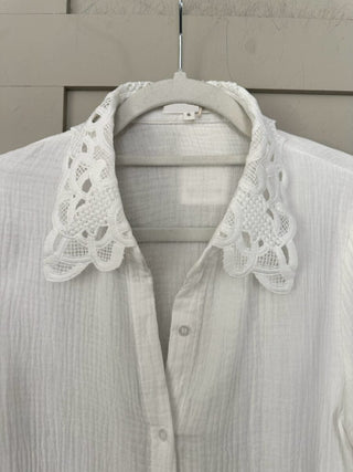 Polly Cheesecloth Blouse with Lace Detail on Collar & Cuffs - Off White