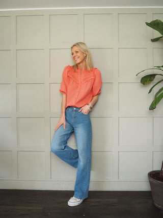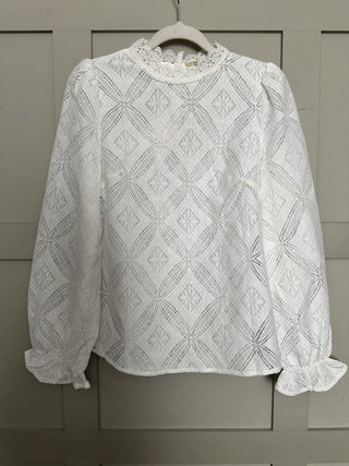 Devon Blouse with Frilly Collar & Broderie Anglaise - Off White