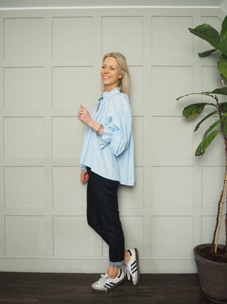 Vinnie Relaxed Fit Cotton Blouse - Baby Blue, Baby Pink, White