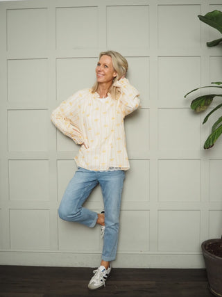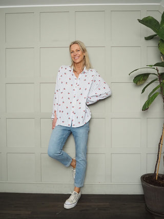 Cherry and Stripe Relaxed Fit Blouse - Off White