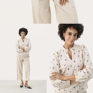Elmy Long Sleeve Seersucker Blouse by Part Two - Ecru/Navy
