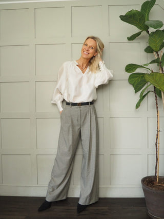 Karolina V Neck Silky Feel Blouse with Full Sleeves and Fitted Cuffs by Soaked - Ivory