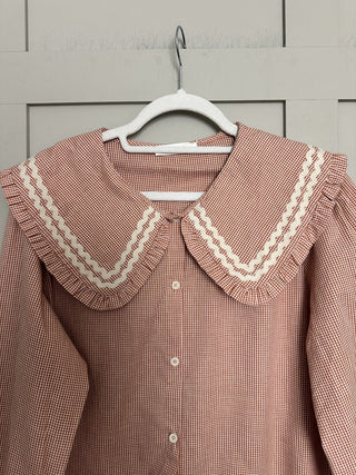 Katja Gingham Blouse with Peter Pan Collar - Rusty Red