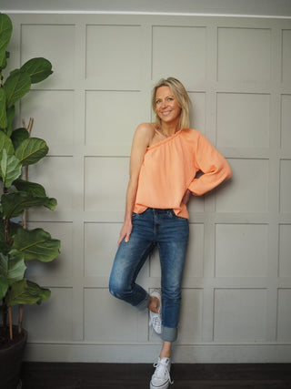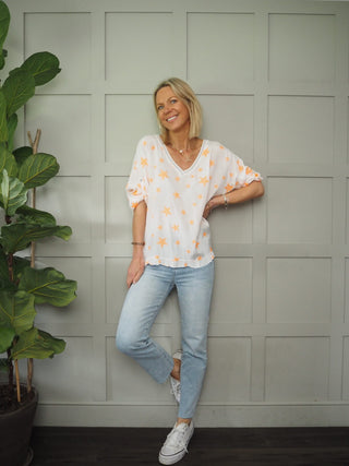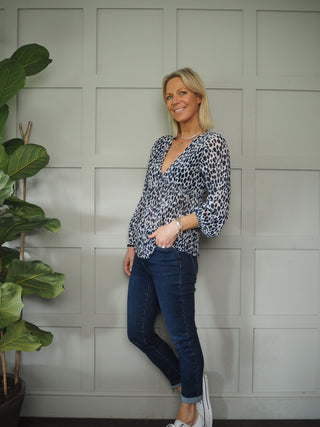 Dorothy Sheer V Neck Blouse - Navy/Off White