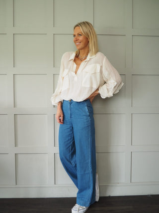 Sea Shell Long Sleeved Cotton Blouse - Off White