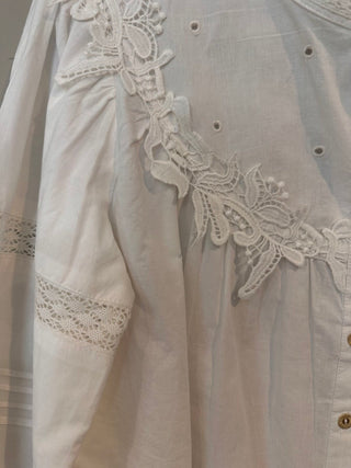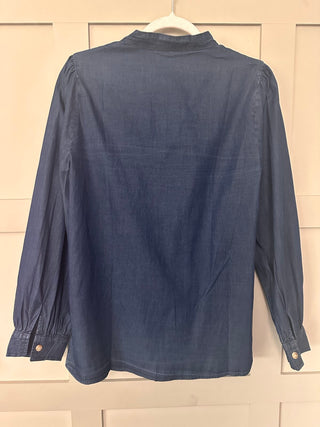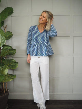 Aggie Cotton Blouse with Broderie Anglaise Detail - Navy Blue