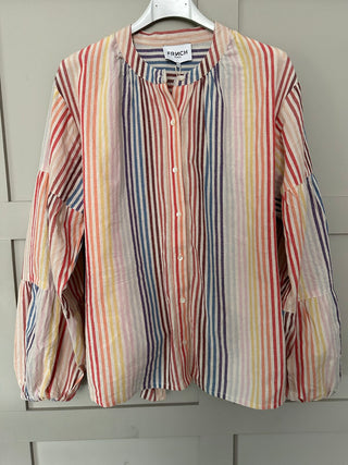 Capucine Cotton Blouse by Frnch - Oatmeal with Multi Coloured Stripes