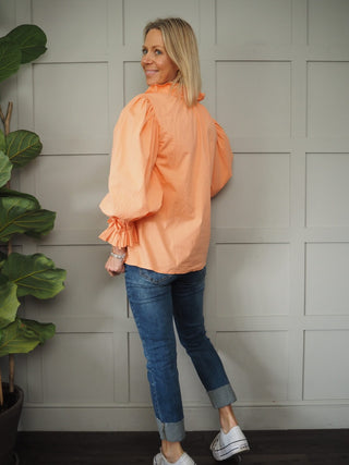 Silk Mix Long Sleeved Blouse with Button Fastenings and Frill Detail - Black