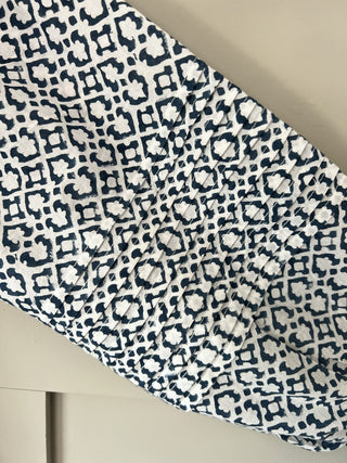 Moroccan Print Blouse with Ruffle and Pin-Tuck Detail - Blue