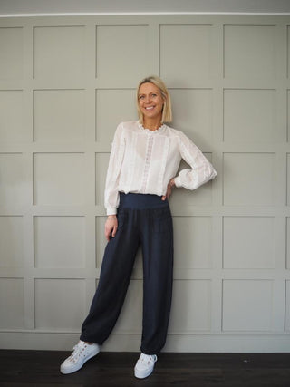 Sander Blouse with Broderie Anglaise Detail - Off White