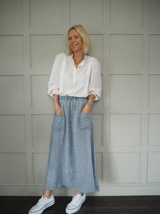 Sander Blouse with Broderie Anglaise Detail - Baby Blue