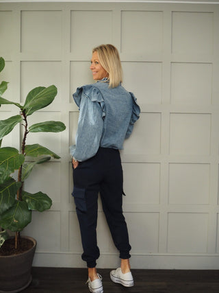 Veronica Floral Blouse with Ruffle Detail - Navy Blue