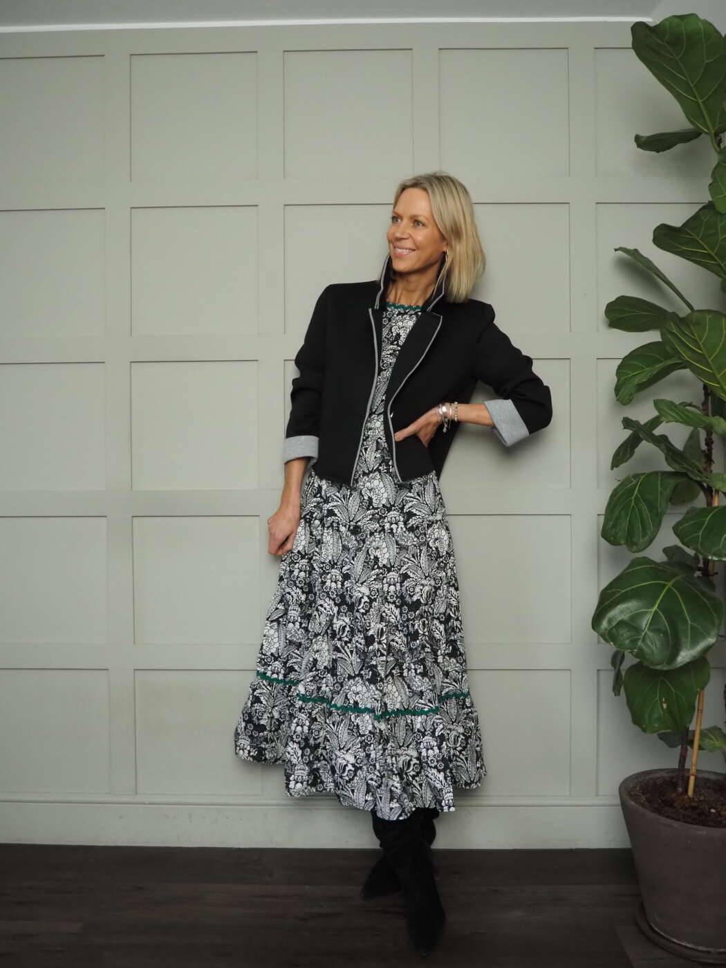 Austen Poplin Smock Dress - Black/White, Green/Purple