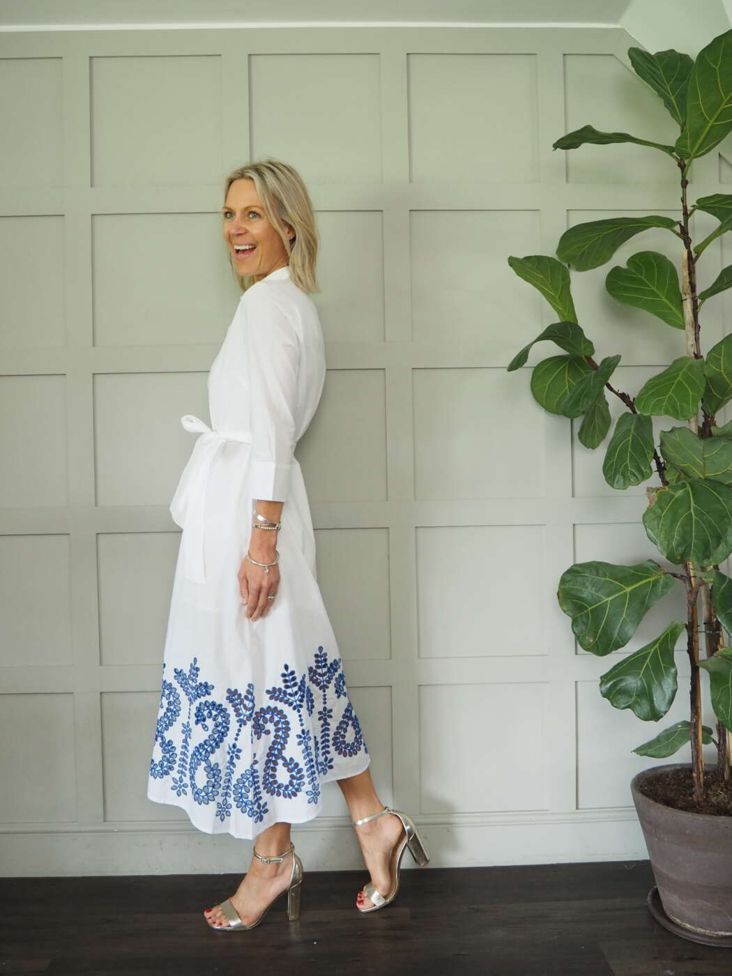 Daly Maxi Shirt Dress - White with Blue Floral Cut Out Detail