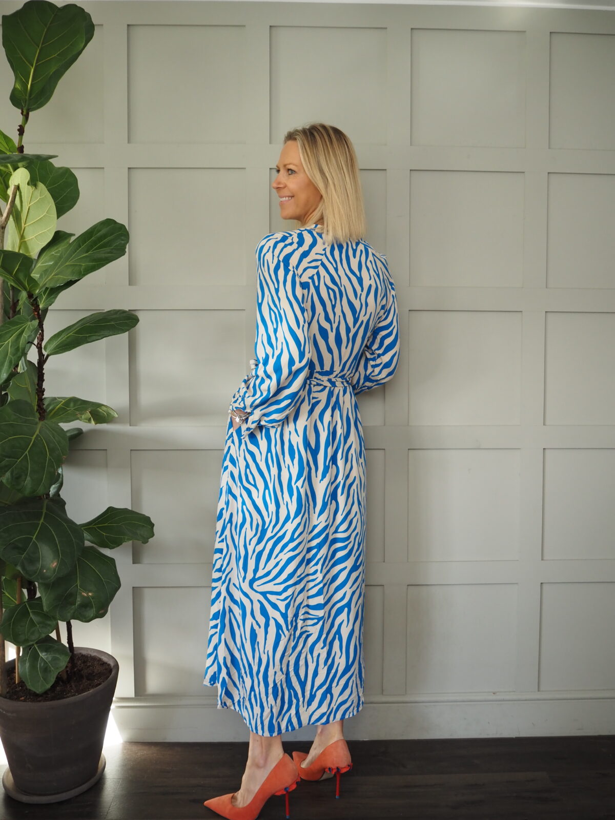 Sizing: Small (UK 8-10), Medium (UK12-14) and Large (UK14-16). Becky is size 10 and 5’9” tall and is wearing the small.