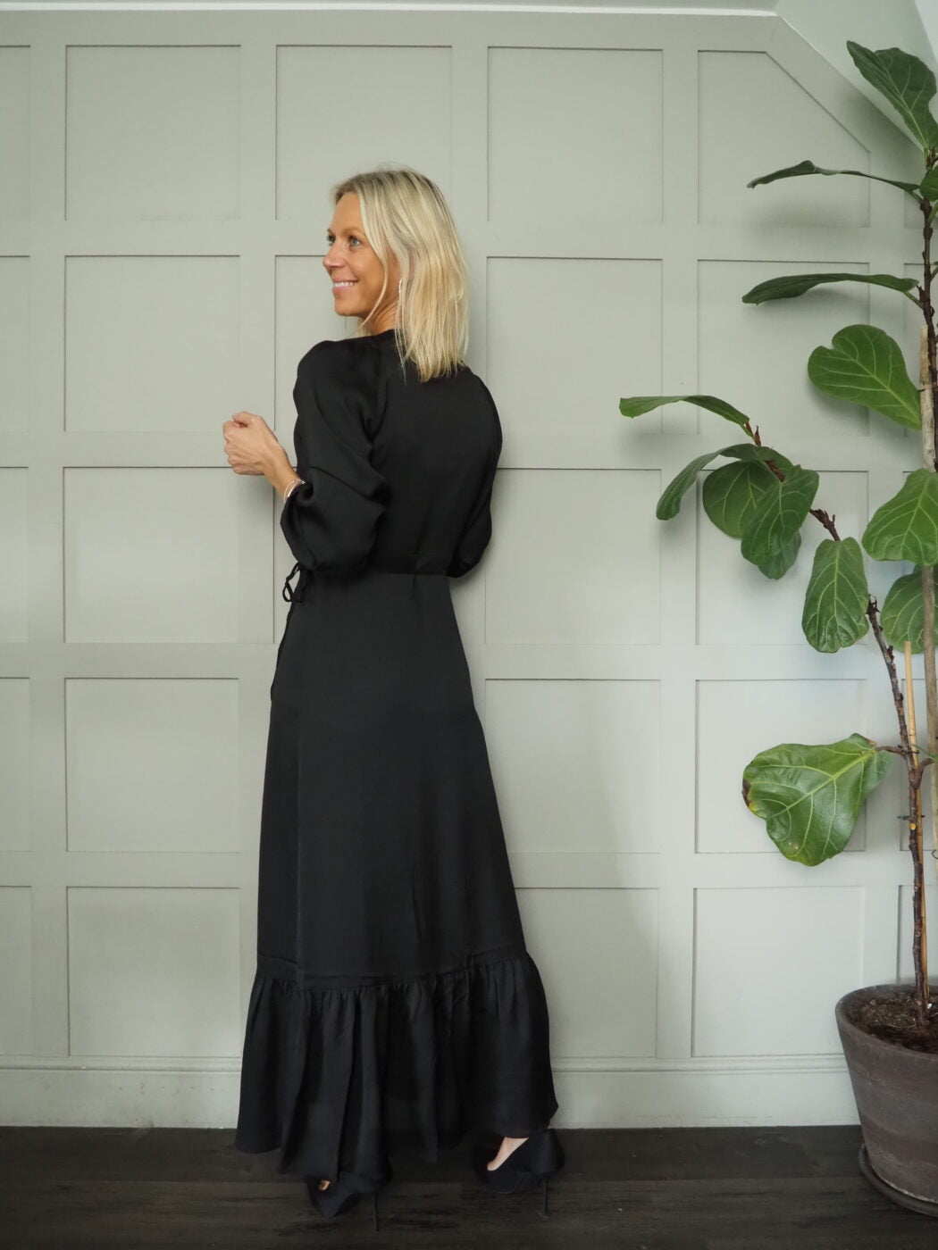 Ioana Maxi Wrap Dress with Ruffle Tier on Hem, Long Length by Soaked - Black