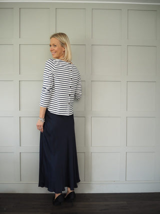 Cinnamon T-Shirt with Enamel Buttons - Navy/Off White Stripes