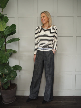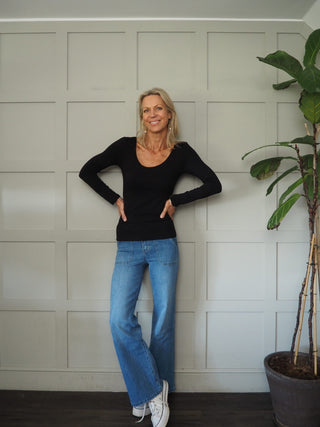Suffolk Long Sleeve T Shirt with Scoop Neck - Black, Off White