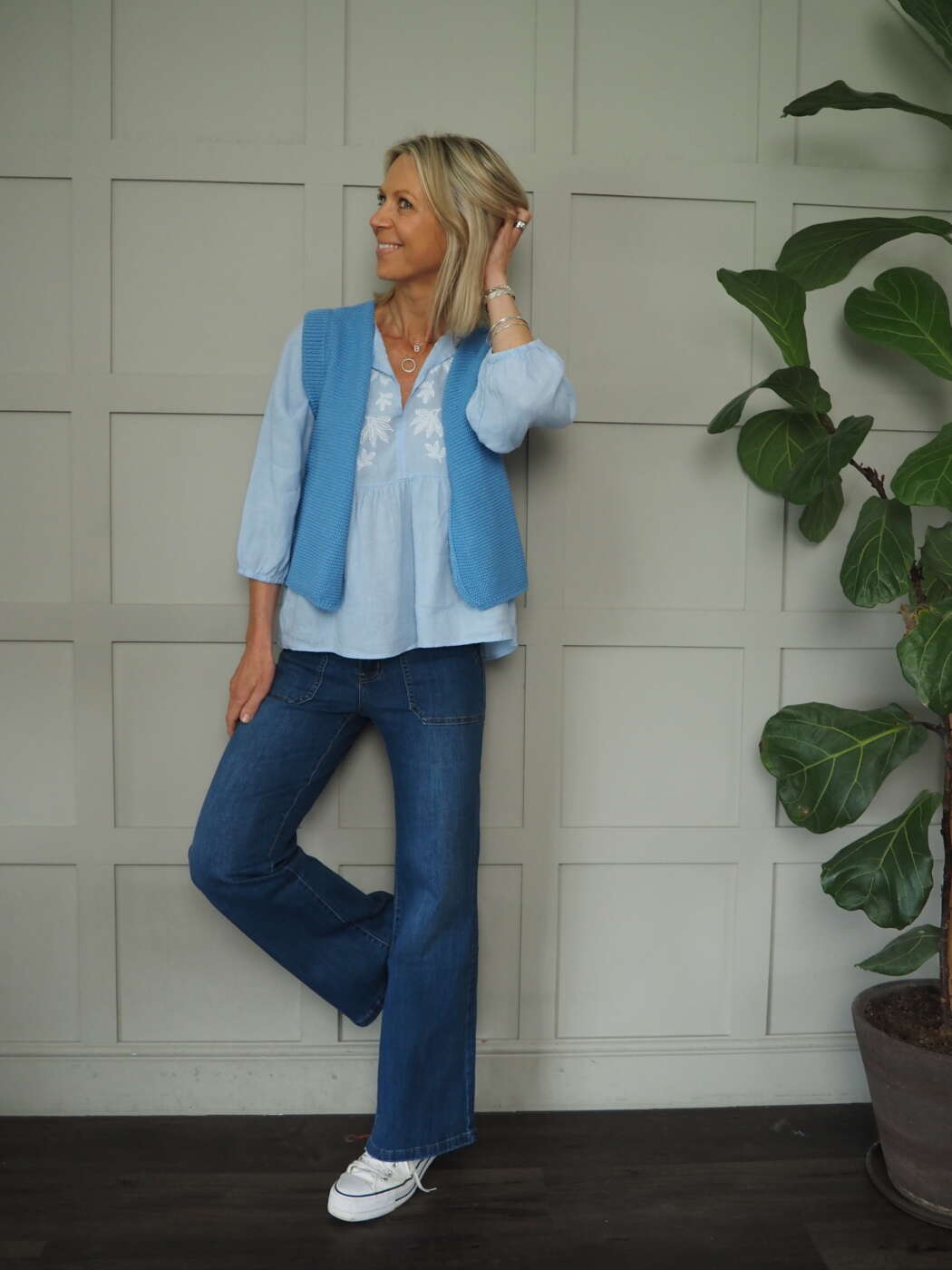 Sizing: One Size to fit 8 to 14. Becky is a size 8-10 and 5’9” tall.