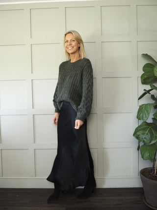Heidi Chunky Knit Jumper with Contrasting Knit on Sleeves by Moss Copenhagen - Khaki