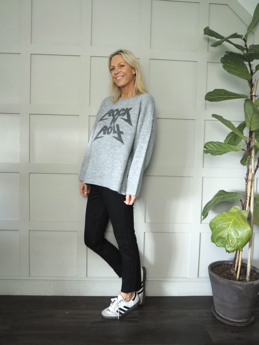 This super cool, super soft, oversized jumper with a ‘Rock N Roll’ logo. A comfortable and easy to wear jumper which looks great with skinny jeans, leggings or leather trousers.