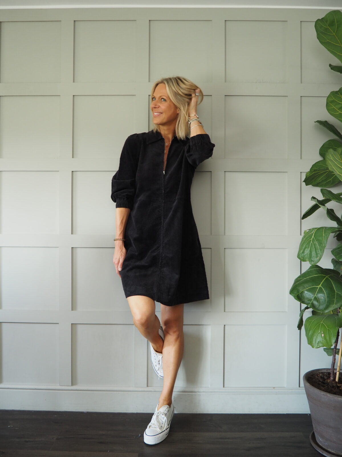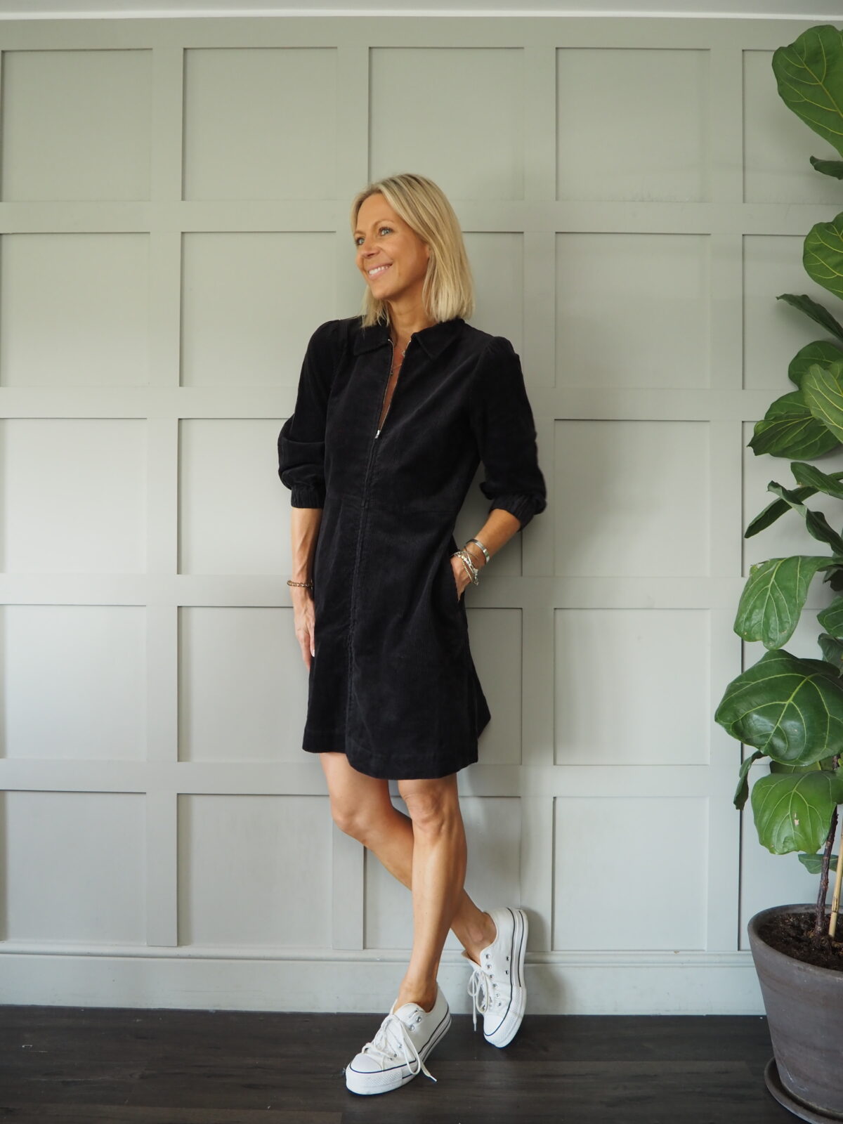 This corduroy dress by Part Two, has a collar and a zip fastening to the front and has pretty puffed shoulder detail. Pockets to the sides and mid-length sleeves with elasticated cuffs. Great worn casually with trainers but would equally look fabulous worn with a pair of long boots.