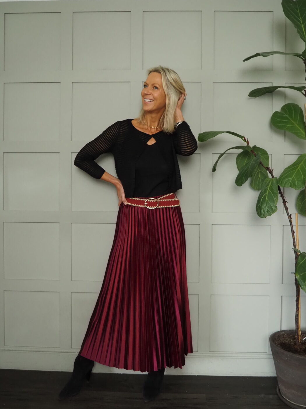 Worn with the Mediya Pleated Maxi Satin Skirt With Elasticated Waist – Black, Burgundy, Navy