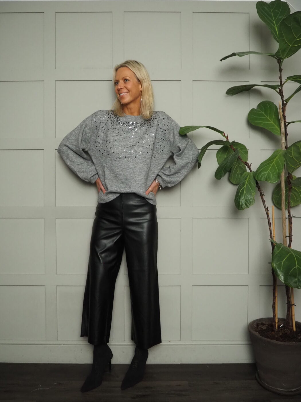 The perfect knit to take you into party season. The jumper has subtle sequin detail on the front and the back has no sequins on it. It has a round neck, full length, full sleeves with pleats on the cuffs which gives them a feminine shape. Super soft and comfortable which works well with jeans or dressed up with skirts and trousers.