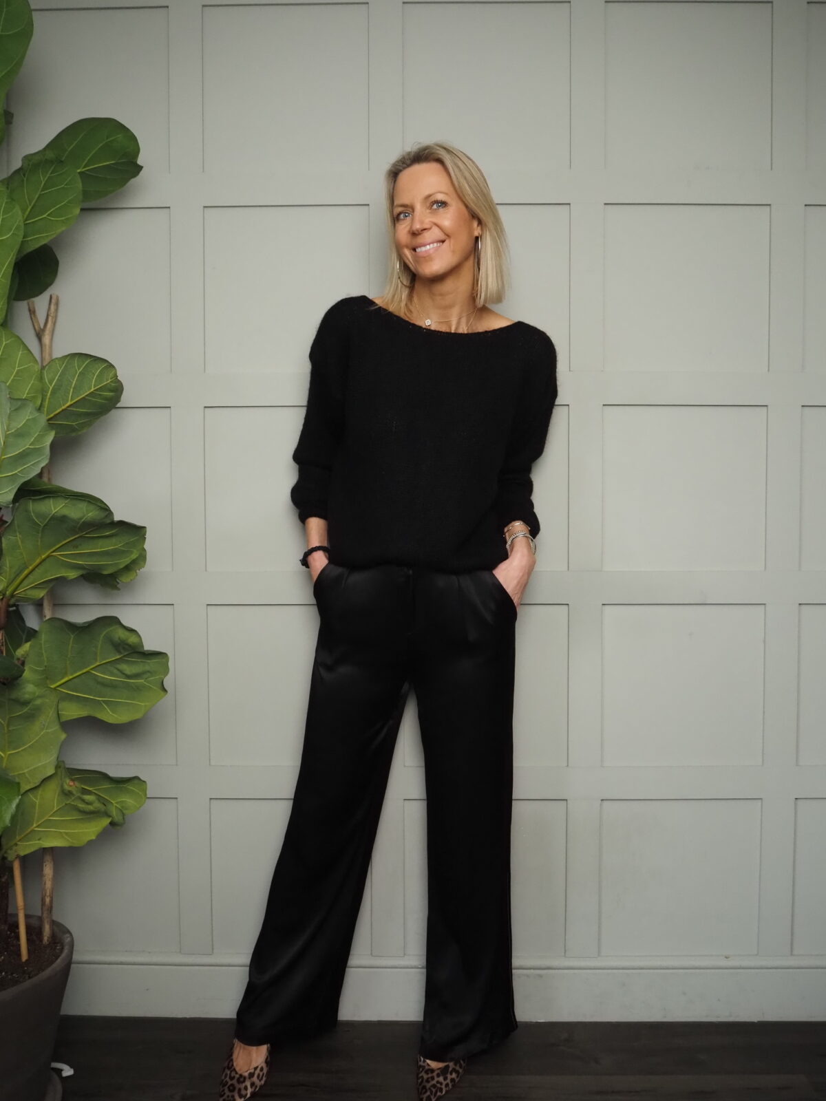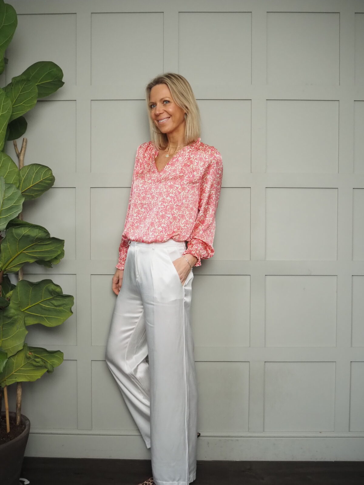Sizing: Small (8-10), Medium (10-12) and Large (12-14). Becky is a size 8-10, 59″ tall and wears the Medium. Please note these trousers come up a little small so if between sizes size up.