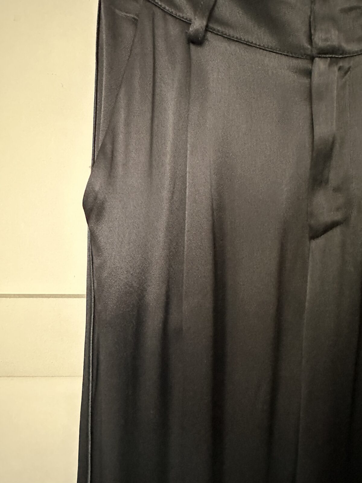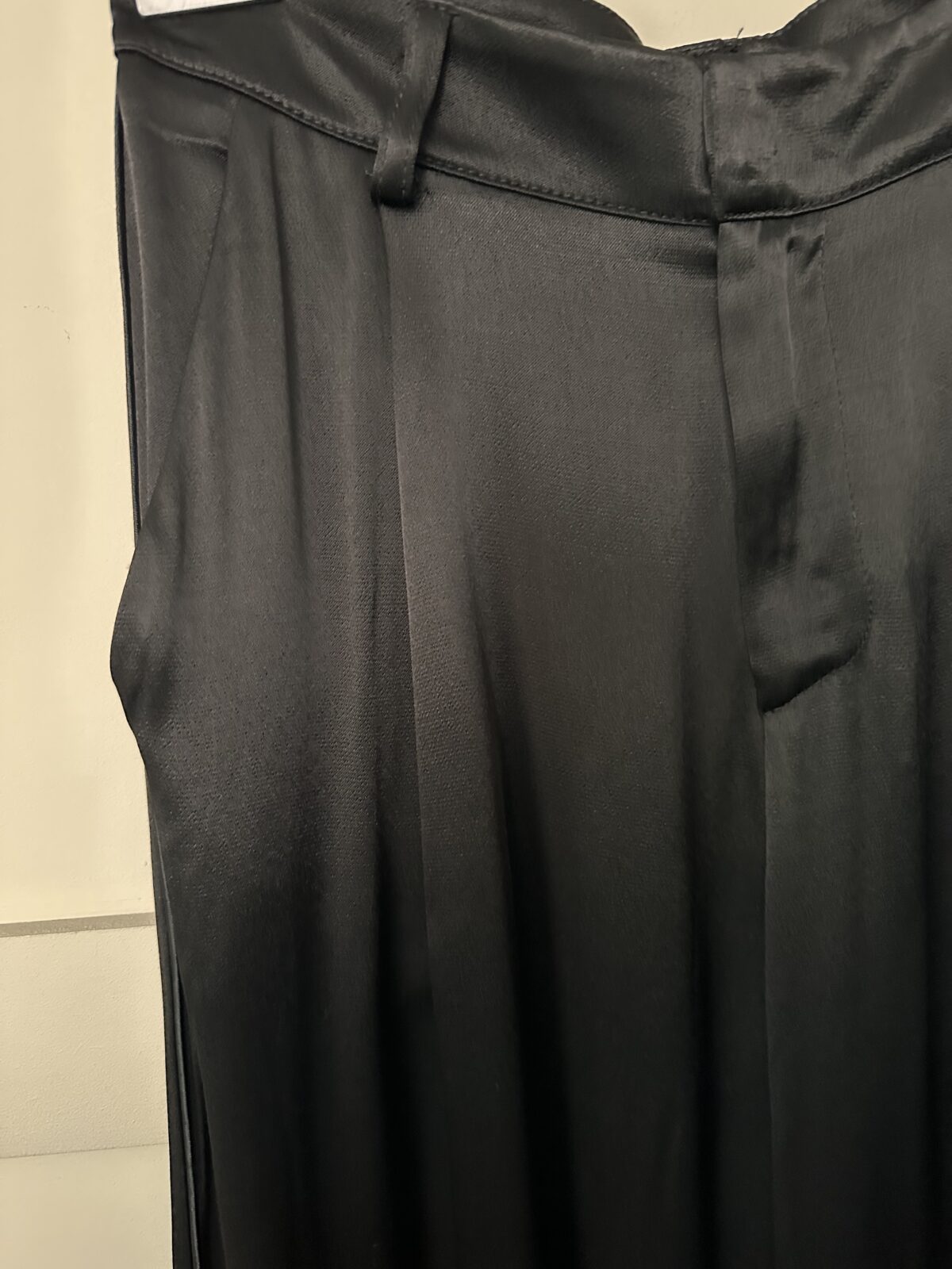 Luxurious, silky feel, wide leg tailored trousers made to a beautiful quality, these can be dressed up or down and are a super useful addition to your spring/summer wardrobe. Perfect for so many occasions, a night out, the races, a summer wedding or a party. Zip fly fastening with a single button and a hook and eye. Belt hoops. Pockets to the sides. Little pleated detail. No pockets to the rear.