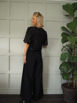 Mesmerising Glitter Sequin Blouse with Long Sleeves, V-Neck and Crossover Front by Pom Amsterdam