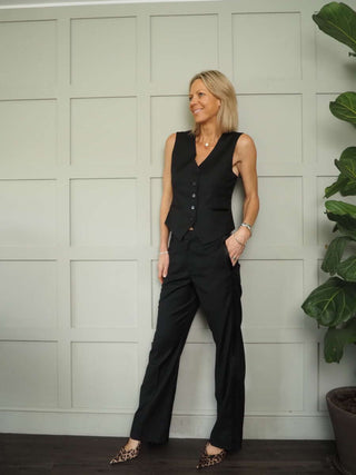 Dalia Tuxedo Trousers with Satin Side Stripe by Part Two - Black