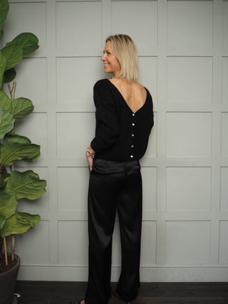 Zozo Sequin Trousers with Satin Side Stripe - Black