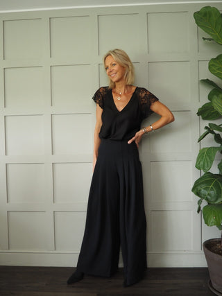 Kitty Wide Leg Trousers with Pleated Front and Side Zip - Black, Camel