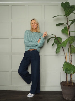 Hally Boat Neck Boxy Chunky Knit Jumper by Saint Tropez - Mint Green/Silver Sparkle