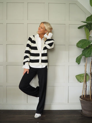 Henrietta Striped Polo Neck Jumper by Saint Tropez - Black/Ecru and Pink/Brown