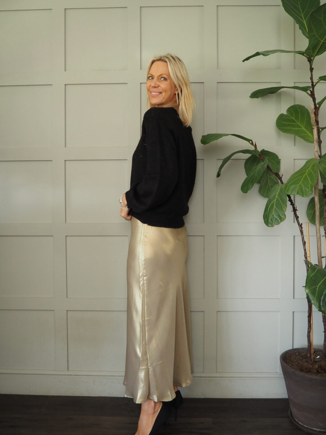 Worn here with the Laurinas Satin Feel Maxi Slip Skirt By Part Two – Gold