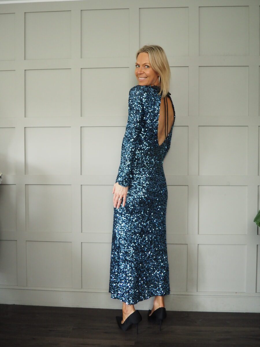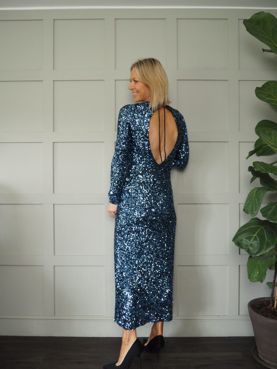A stunning dress, this is simply gorgeous in a beautiful colour with sequins all over – a total head turner! Open back with a tie detail at the top.